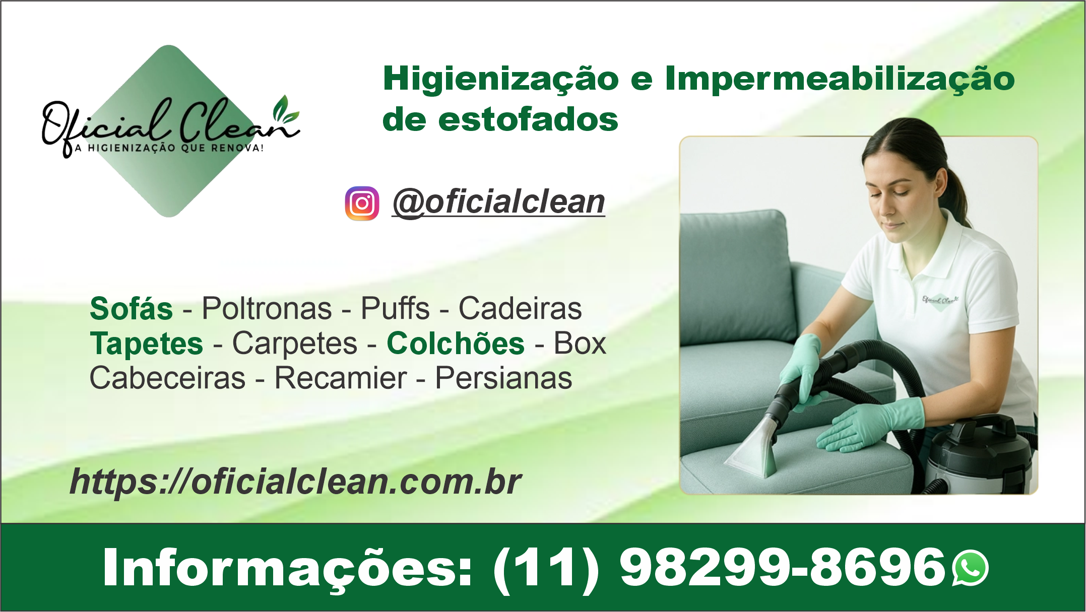 A higienização que é considerada ecologicamente correta é aquela que utiliza apenas 10% de água, e utiliza produtos com base 100% vegetal e biodegradável, a natureza agradece.